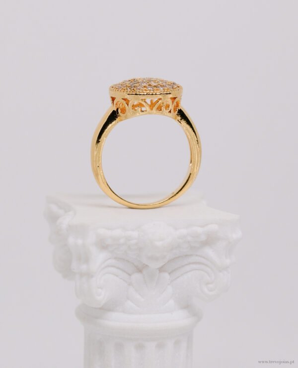 Com um estilo intemporal e cheio de brilho, o Anel Luz Imperial é uma joia marcante que combina sofisticação, elegância e beleza numa peça distinta.