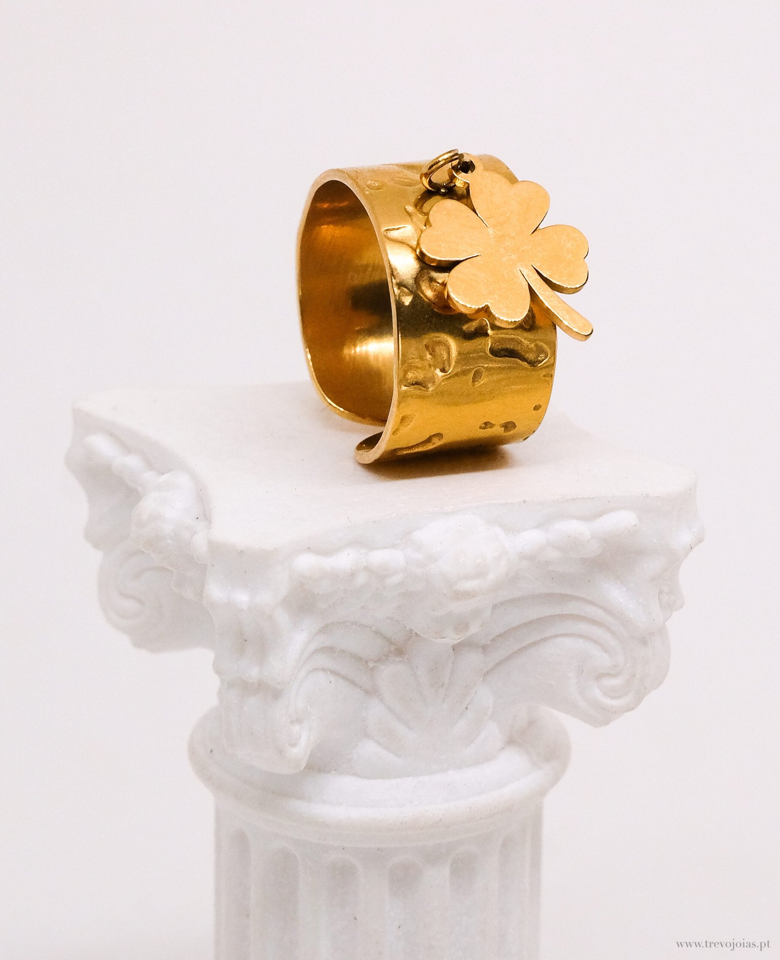 Anel trevo martelado
