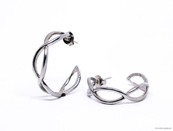 As Argolas Carla destacam-se pelo seu design moderno e sofisticado, composto por linhas entrelaçadas que criam um efeito visual delicado e harmonioso. O acabamento em prata polida realça o brilho natural da peça, conferindo-lhe um toque elegante e intemporal.