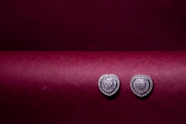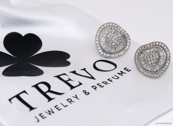 Os brincos Rainha Santa Isabel são uma peça elegante e sofisticada em forma de coração, totalmente cravejada com pequenas pedras brilhantes que refletem a luz com grande intensidade.