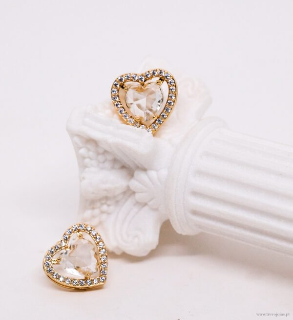 Os Brincos Coração em Aço Inoxidável com Pedras Estilo Diamante são a combinação perfeita de delicadeza, brilho e sofisticação. Com um design romântico em formato de coração, a peça apresenta uma pedra central transparente cercada por pequenas pedras brilhantes que criam um efeito semelhante ao de diamantes.