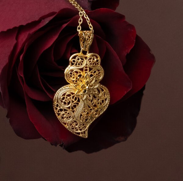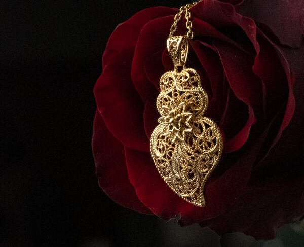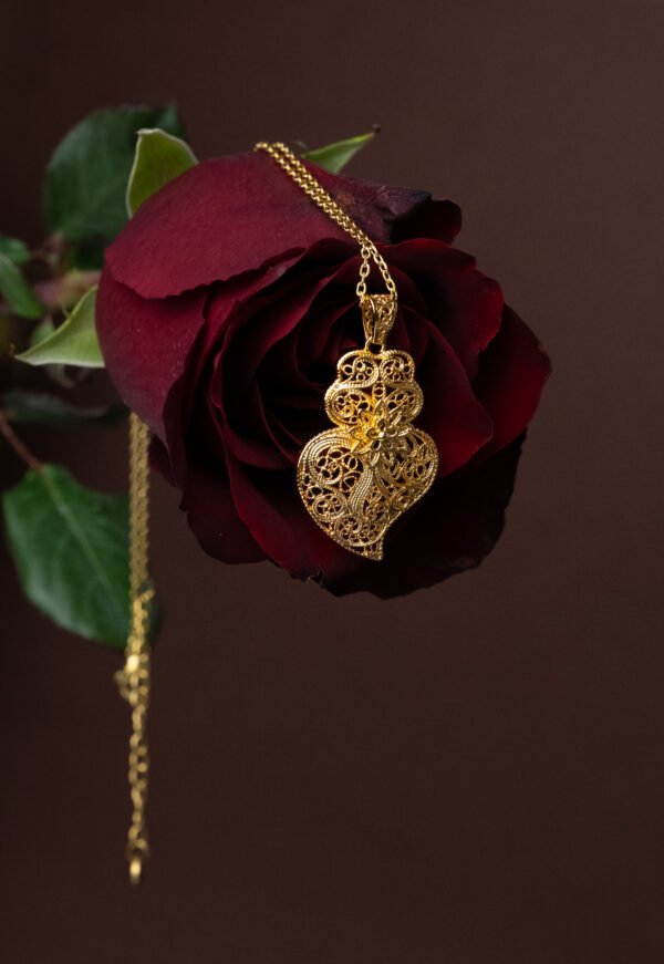 O Fio Coração de Viana é uma homenagem à tradição portuguesa, representando amor, devoção e força feminina. Com um pingente em filigrana dourada, esta peça se destaca pela sua leveza, elegância e riqueza de detalhes. Ideal para quem valoriza cultura e significado nas suas joias. Feito em aço inoxidável — material hipoalergênico, resistente à oxidação e ideal para o uso diário.