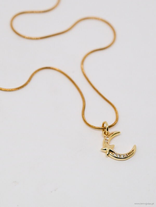 O Colar Lua Star – La La Land combina delicadeza e magia em uma peça com significado. A lua crescente com uma pequena estrela sobreposta simboliza proteção, renovação e sonhos — com detalhes em mini zircônias que capturam a luz com sutileza.
